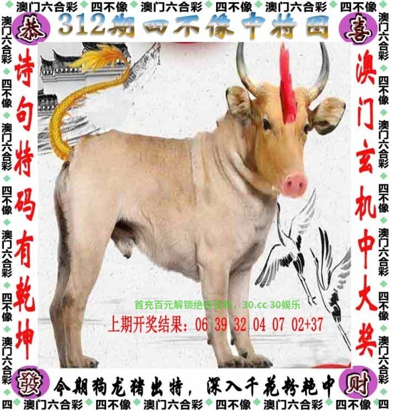 | 312期:复式⑤肖【狗鼠虎鸡牛】开:中1个 |